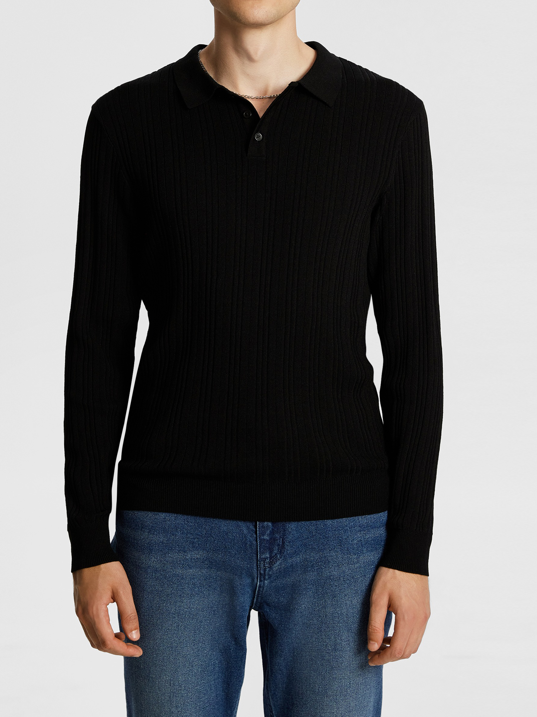 Black Long Sleeve Ribbed Polo Shirt
