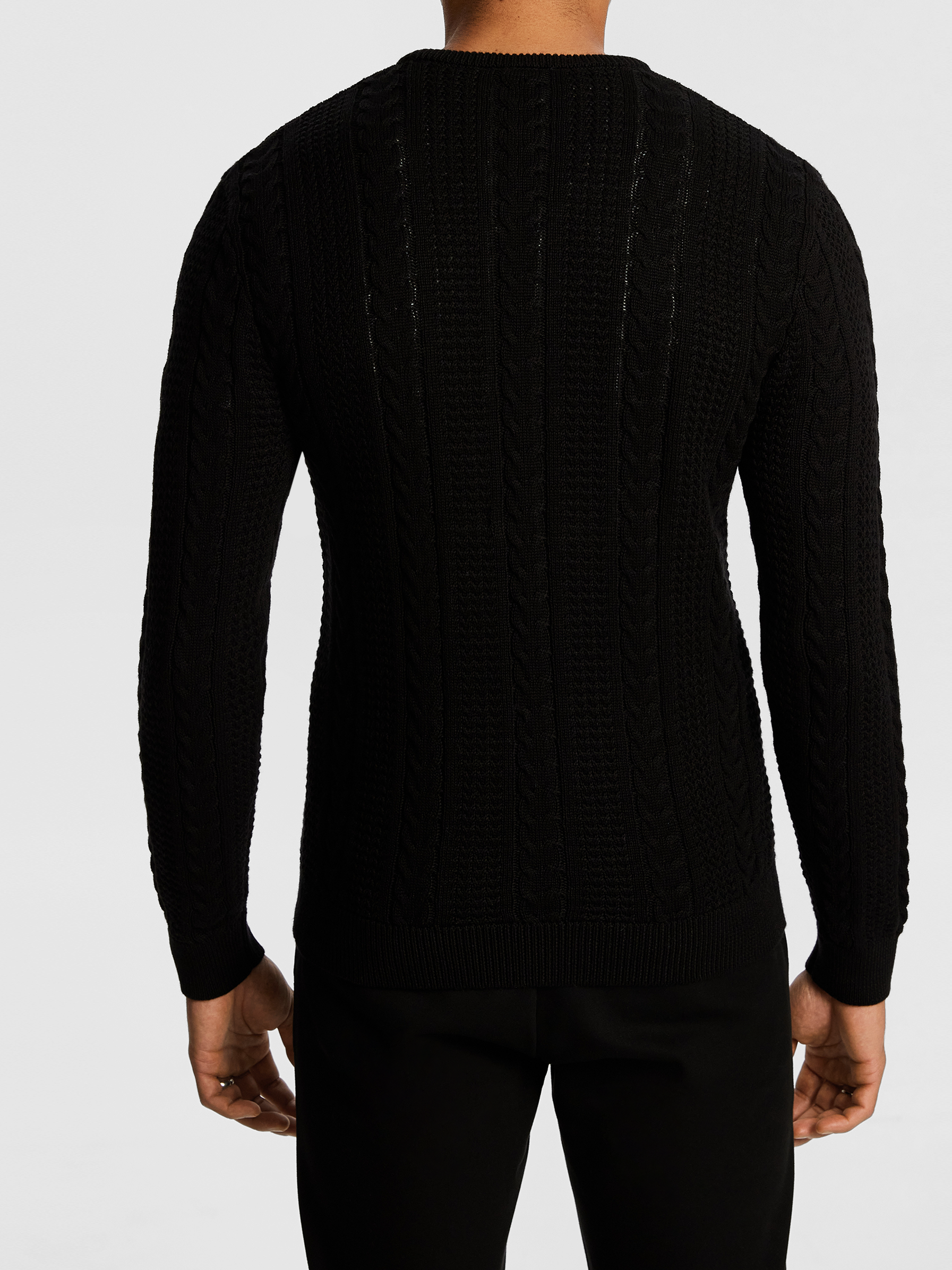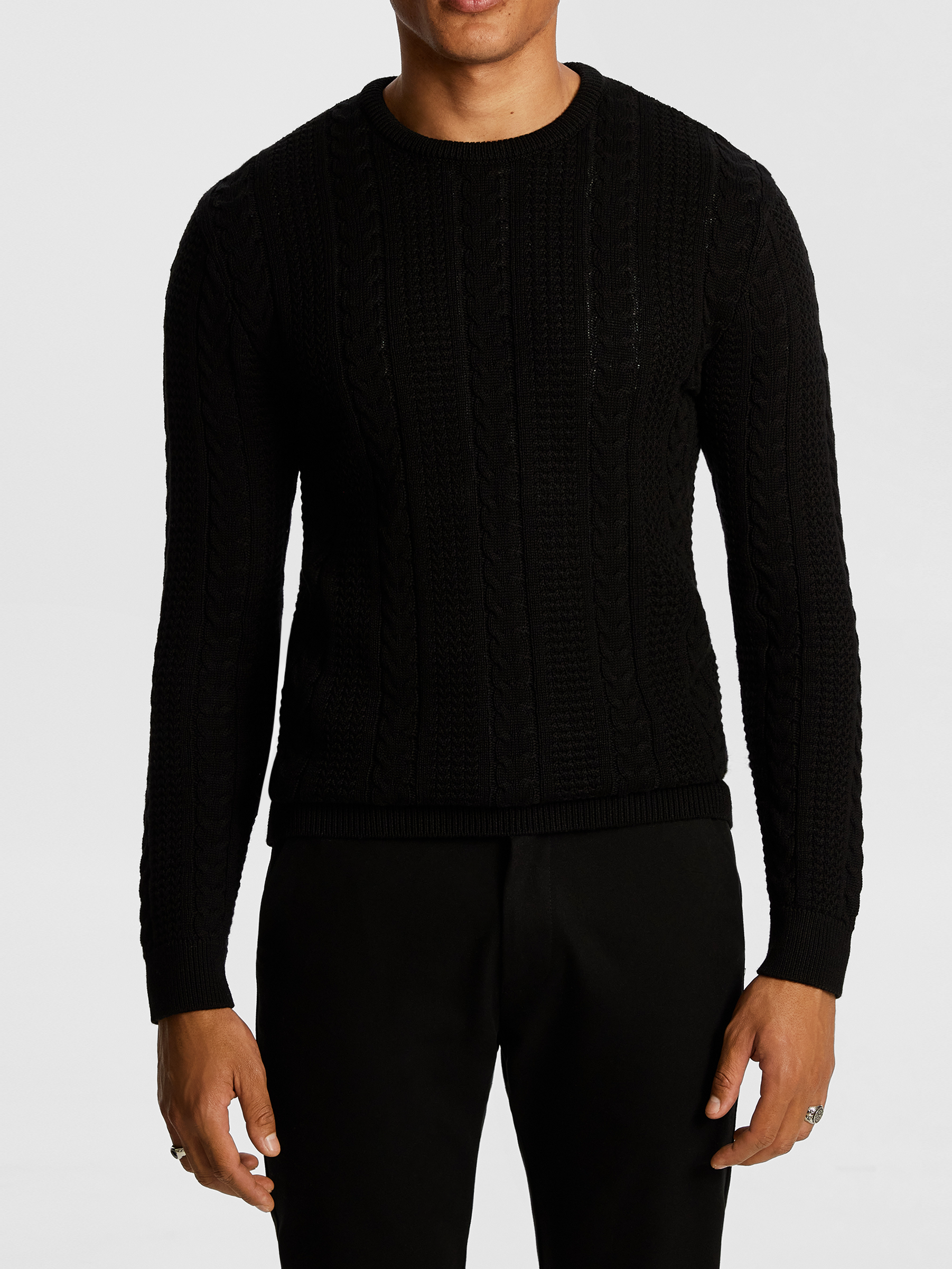Black Cable Knit Crew Neck Sweater