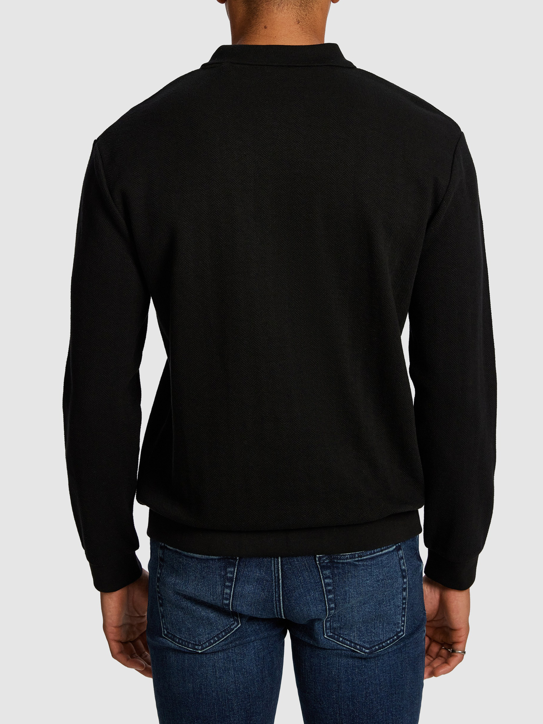 Black Long Sleeve Knit Polo Shirt