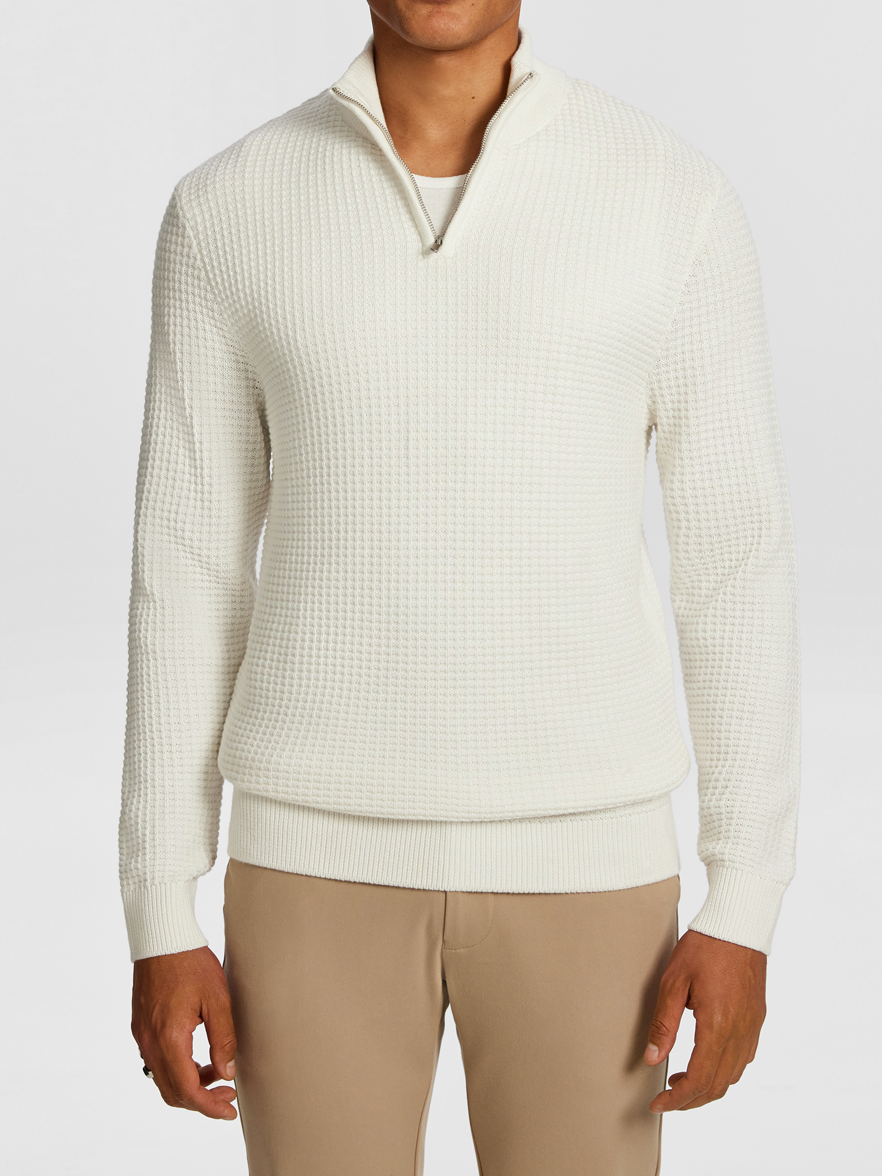 White Quarter Zip Knit Sweater