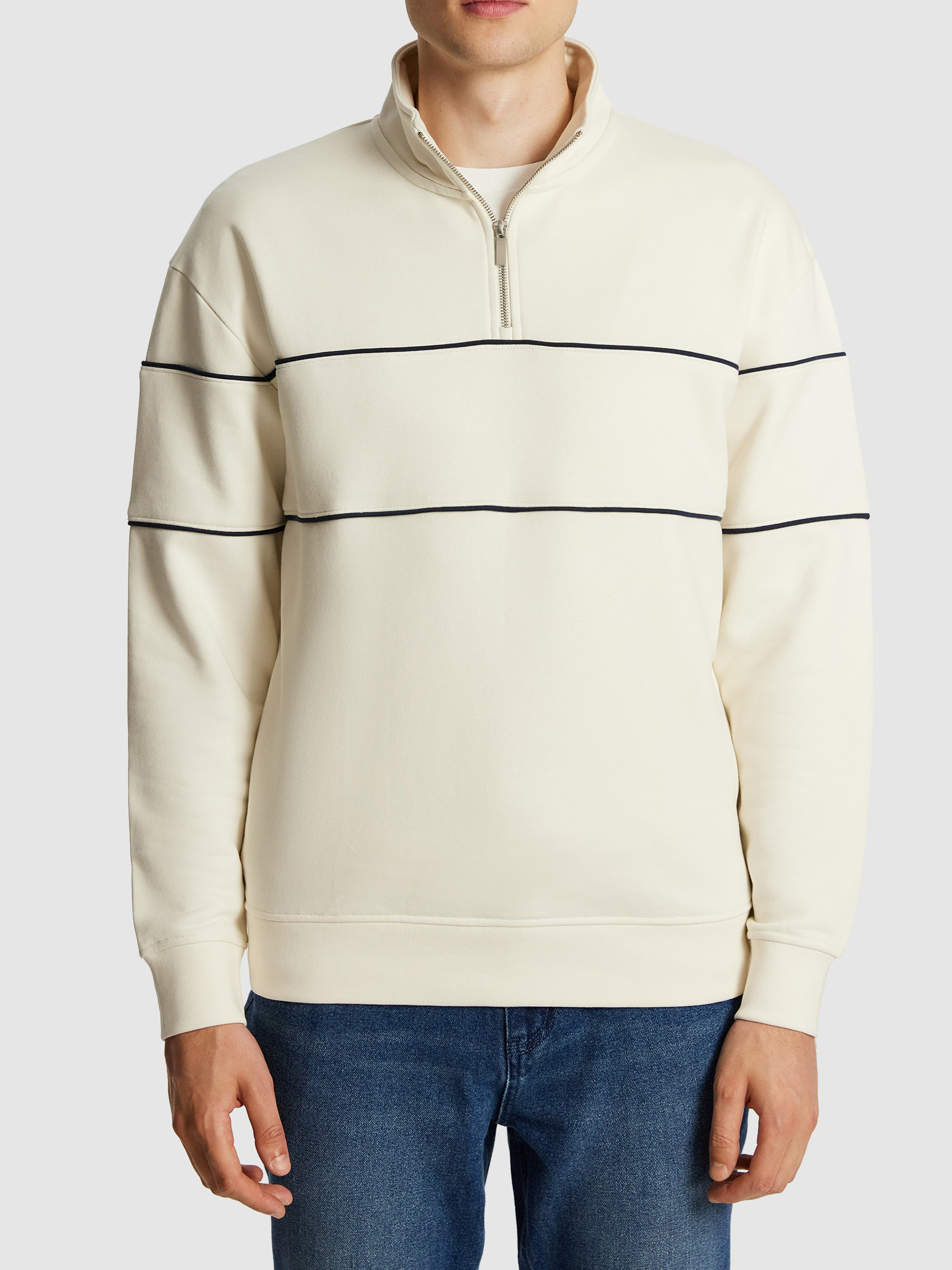 Off White Quarter Zip Striped Sweatshirt