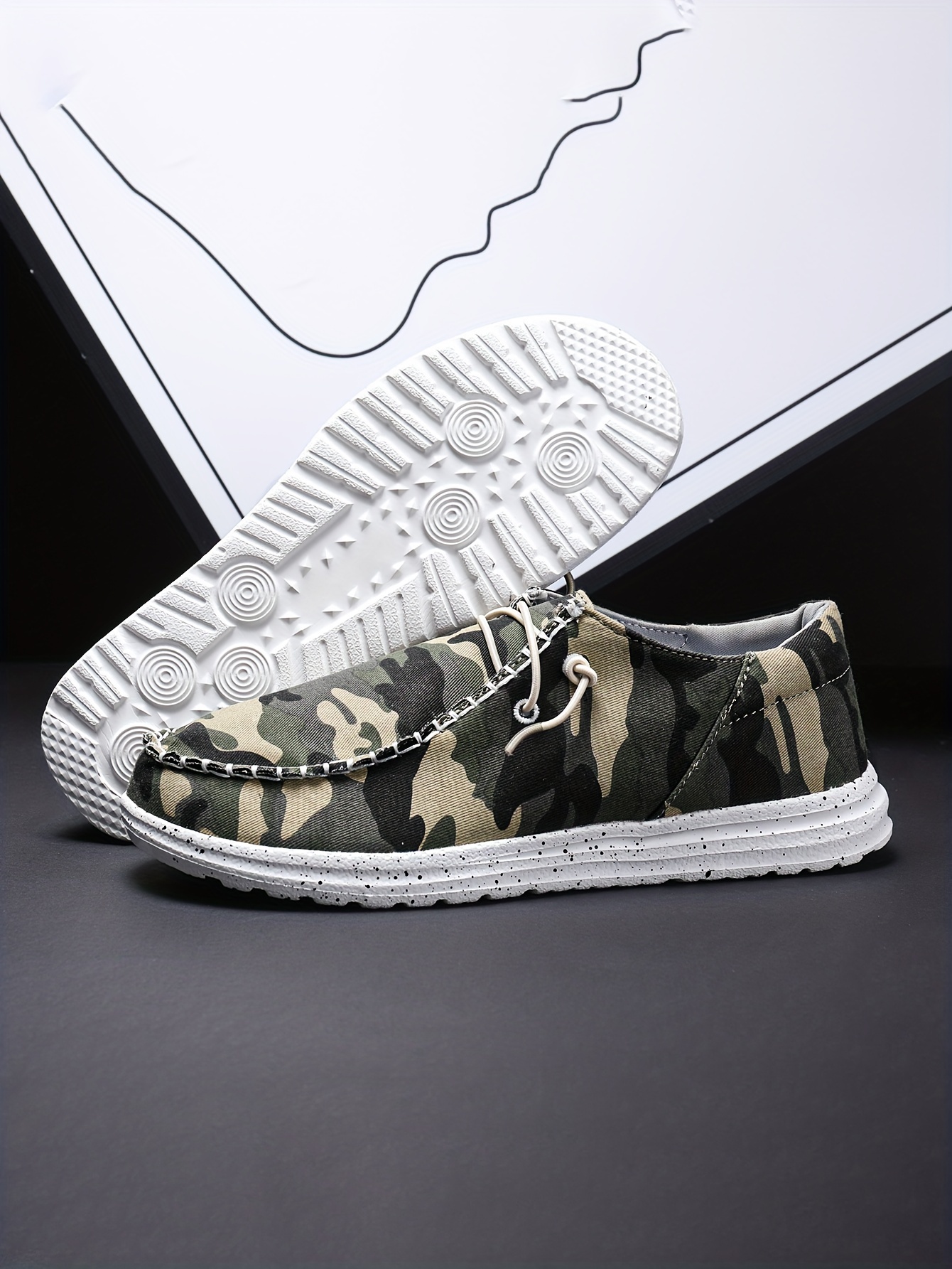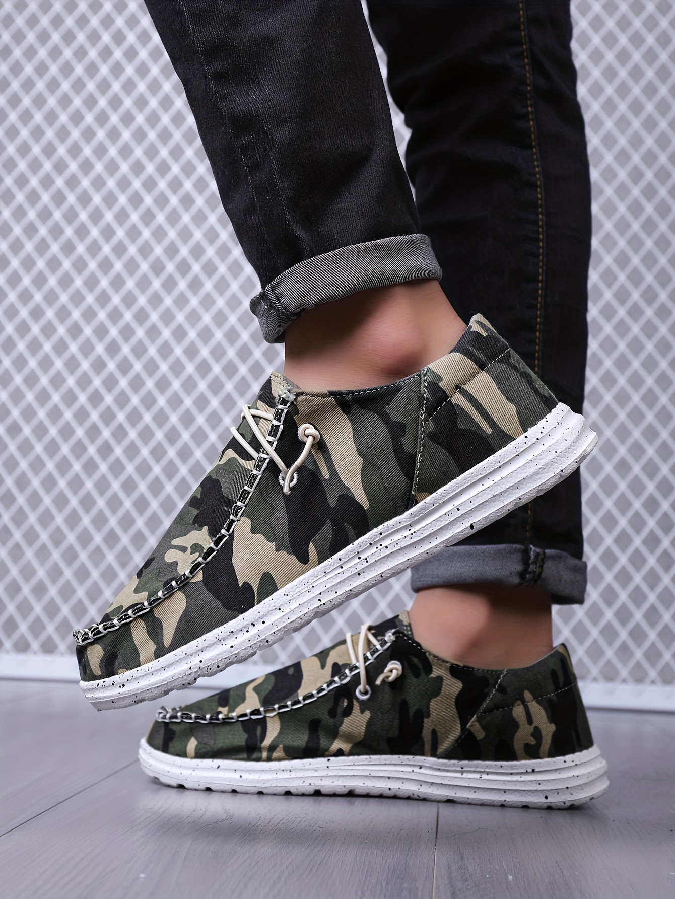 Men's Camouflage Loafer Shoes With Decorative Shoelaces